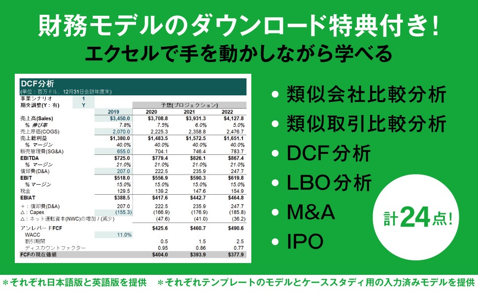 また、そのまま実践活用できる、財務モデルのエクセルワークシート24点が本書特典としてダウンロードいただけます。