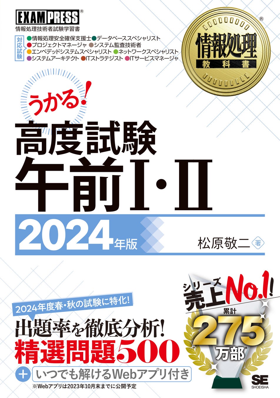 2024年度の高度系試験の午前I・II対策はこれで決まり! 的中率の高さを誇る定番問題集です。読者特典のWebアプリで、学習効果をさらに高めることができます。