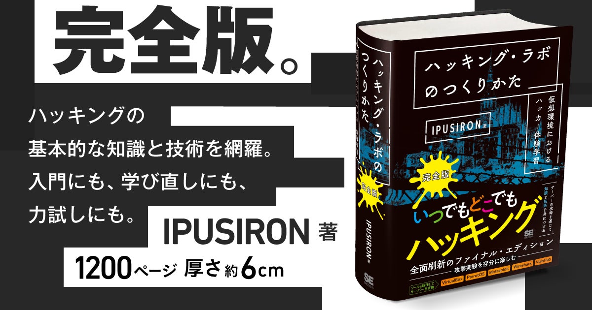 5年の時を経て、全面刷新された『ハッキング・ラボのつくりかた 完全版 仮想環境におけるハッカー体験学習』を2024年2月20日に発売します。前作のよかった点を踏襲し、課題点を改善した、1,200ページという圧倒的ボリュームで、これまでの読者はもちろん、初めてハッキング・ラボに触れる方も満足のいく内容になっています。