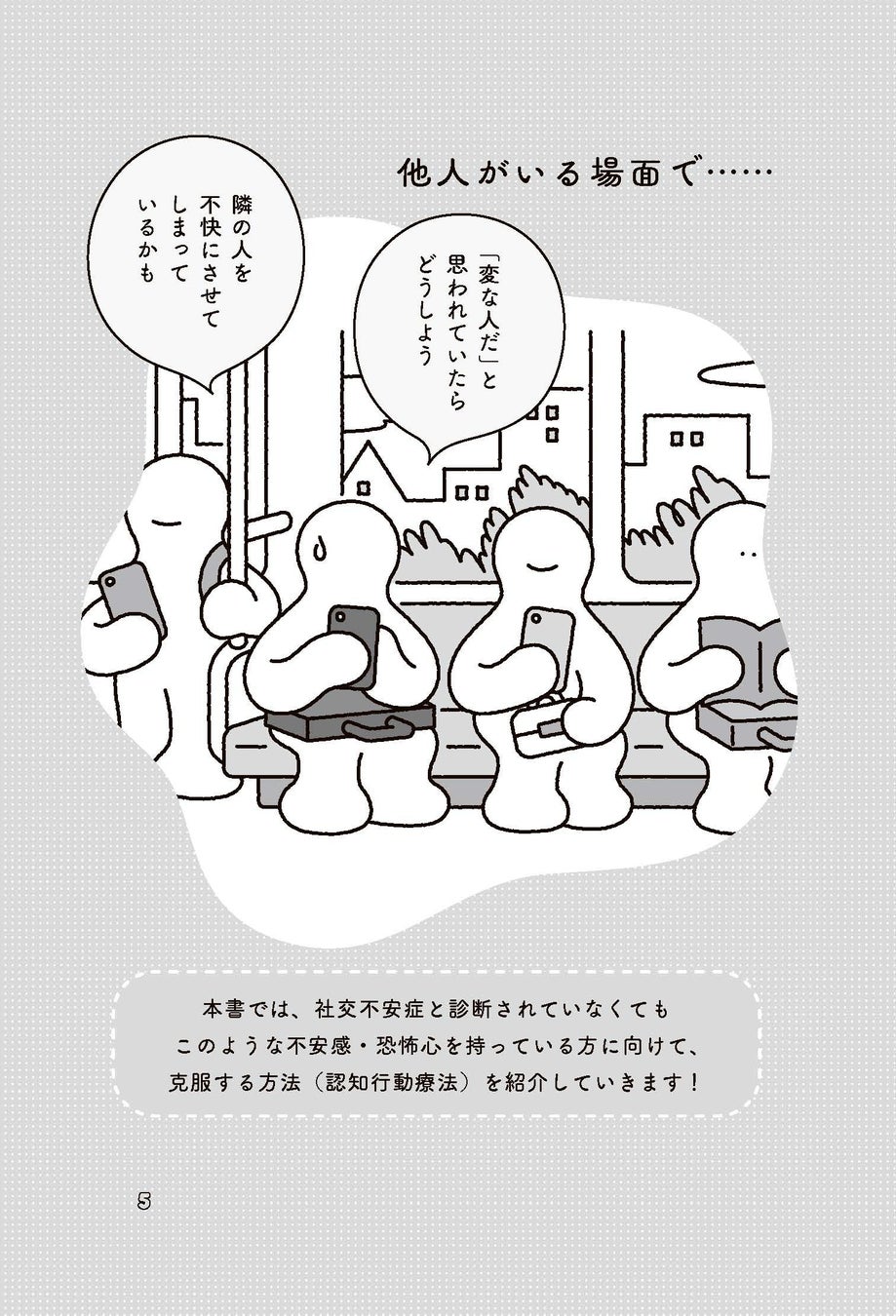 本書では、社交不安症と診断されていなくても、社交場面で強い緊張や不安感、恐怖心を持っている方に向けて、対処法(認知行動療法)を解説します。
