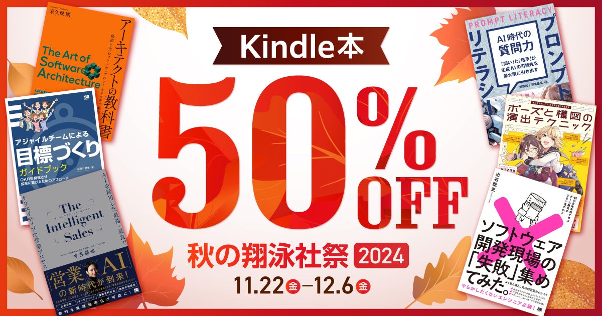 株式会社翔泳社(本社:東京都新宿区舟町5、社長:佐々木幹夫)は、2024 年11月22日(金)から12月6日(金)まで電子書籍セール「Kindle本 秋の翔泳社祭 2024」を開催します。