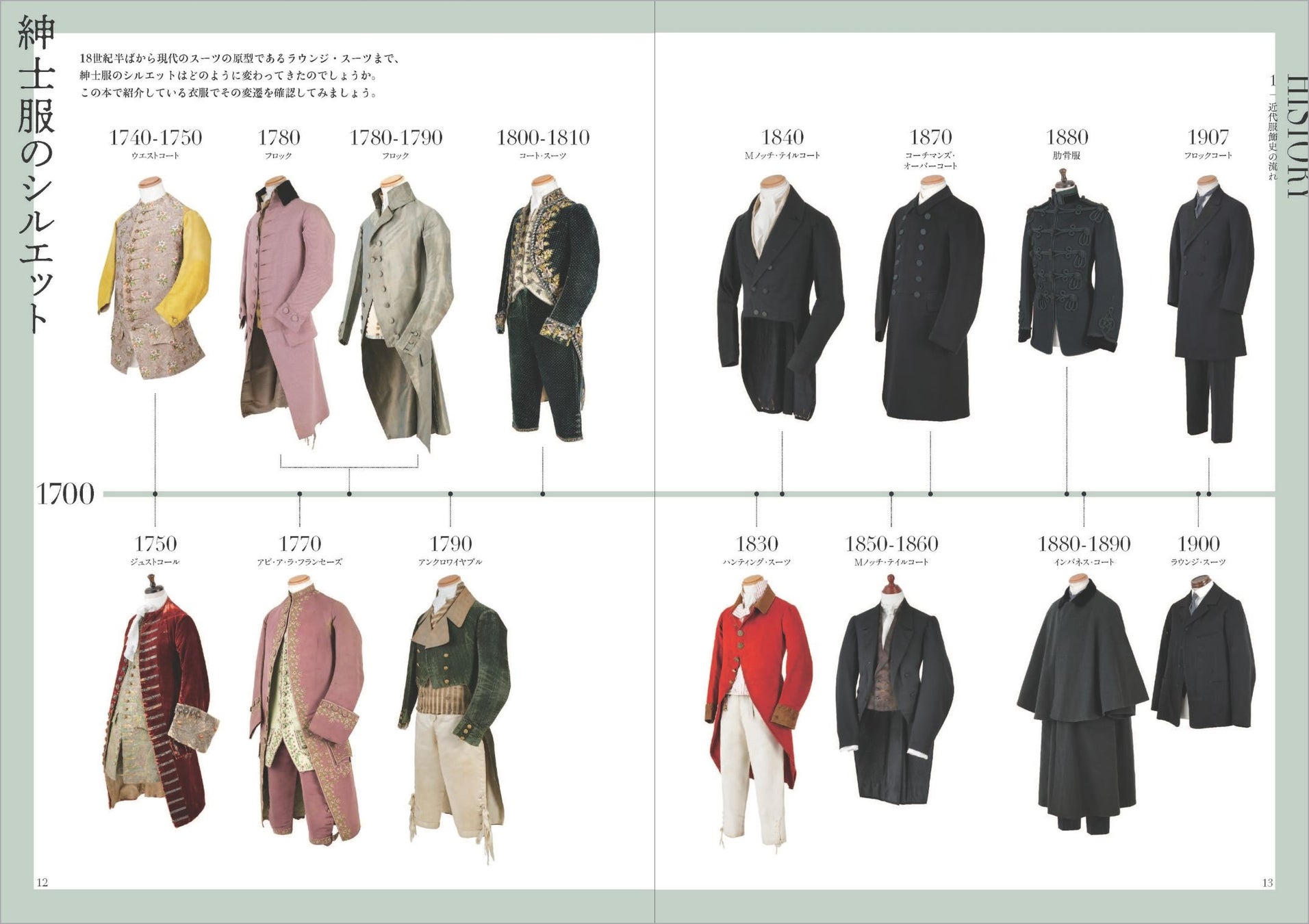 ウエストコート、アビ・ア・ラ・フランセーズ、カルマニョール、アンクロワイヤブル、Mノッチ・テイルコート、コーティー、肋骨服、ラウンジ・スーツなど31着を掲載