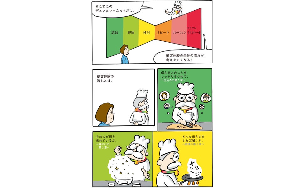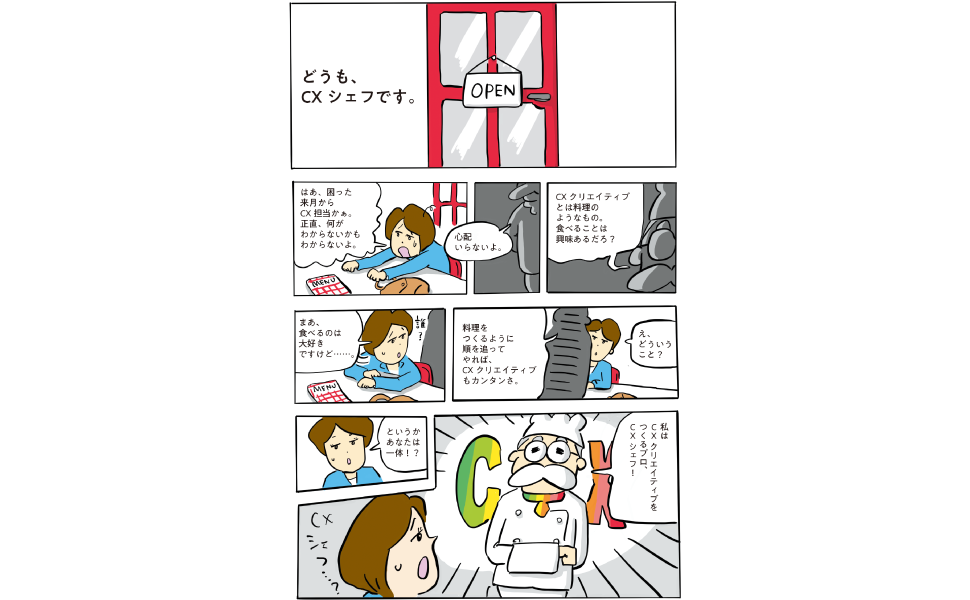 本書は、CXをクリエイティブの視点から、はじめて取り組む人でもわかりやすく解説した1冊です。CXクリエイティブを「料理」にたとえながら、顧客体験の流れにそって適切なコミュニケーションやプラットフォームなどについて説明します。オールカラーページで、豊富な図解を用いながら、対話形式でテンポよく話が進んでいくので、見るだけで理解できるつくりとなっています。